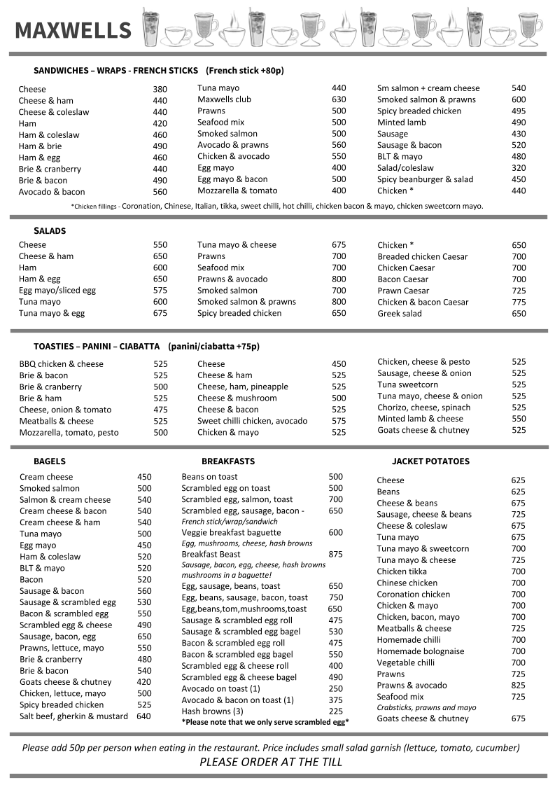 Welcome to Maxwells, a delightful café located at 11 Queens Rd, Southend-on-Sea. This charming eatery offers a diverse menu, perfect for any palate. From fresh salads like the Prawn & Avocado and Chicken Caesar to mouthwatering toasties such as the BBQ Chicken & Cheese and Brie & Cranberry, every dish is crafted with care. The pasta options, such as Meatball Pasta with Cheese, are hearty and satisfying, making them a favorite among regulars.